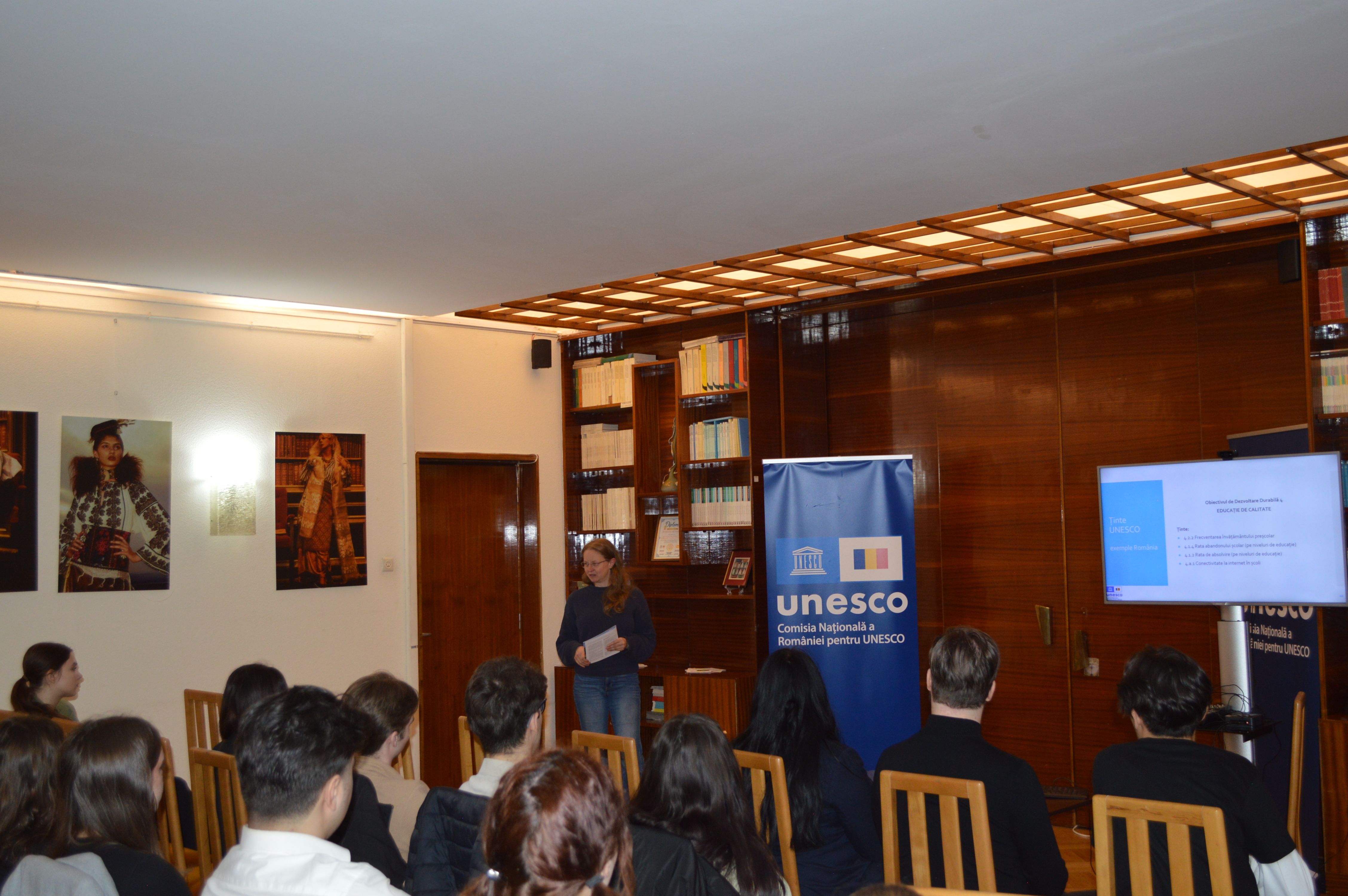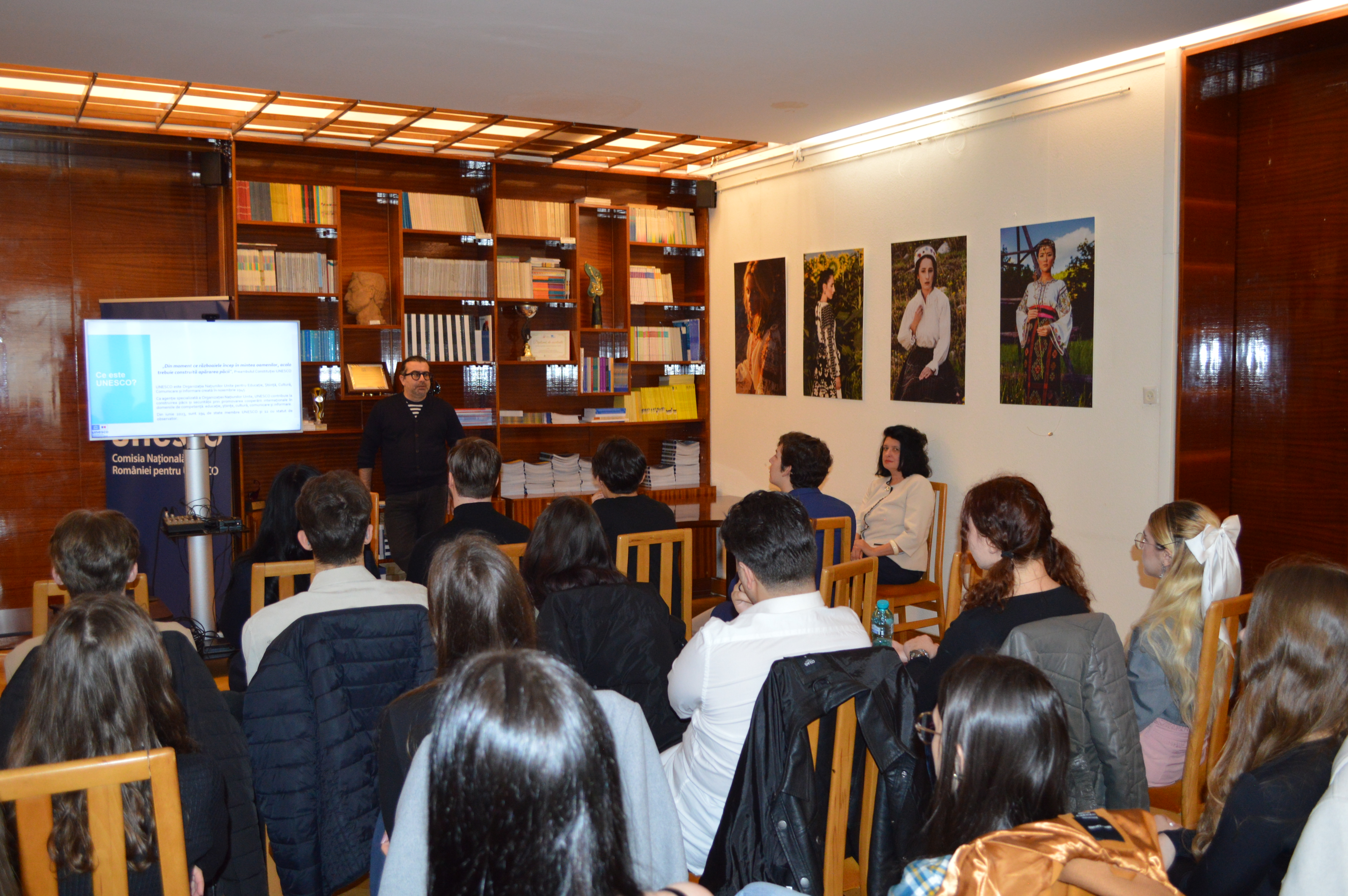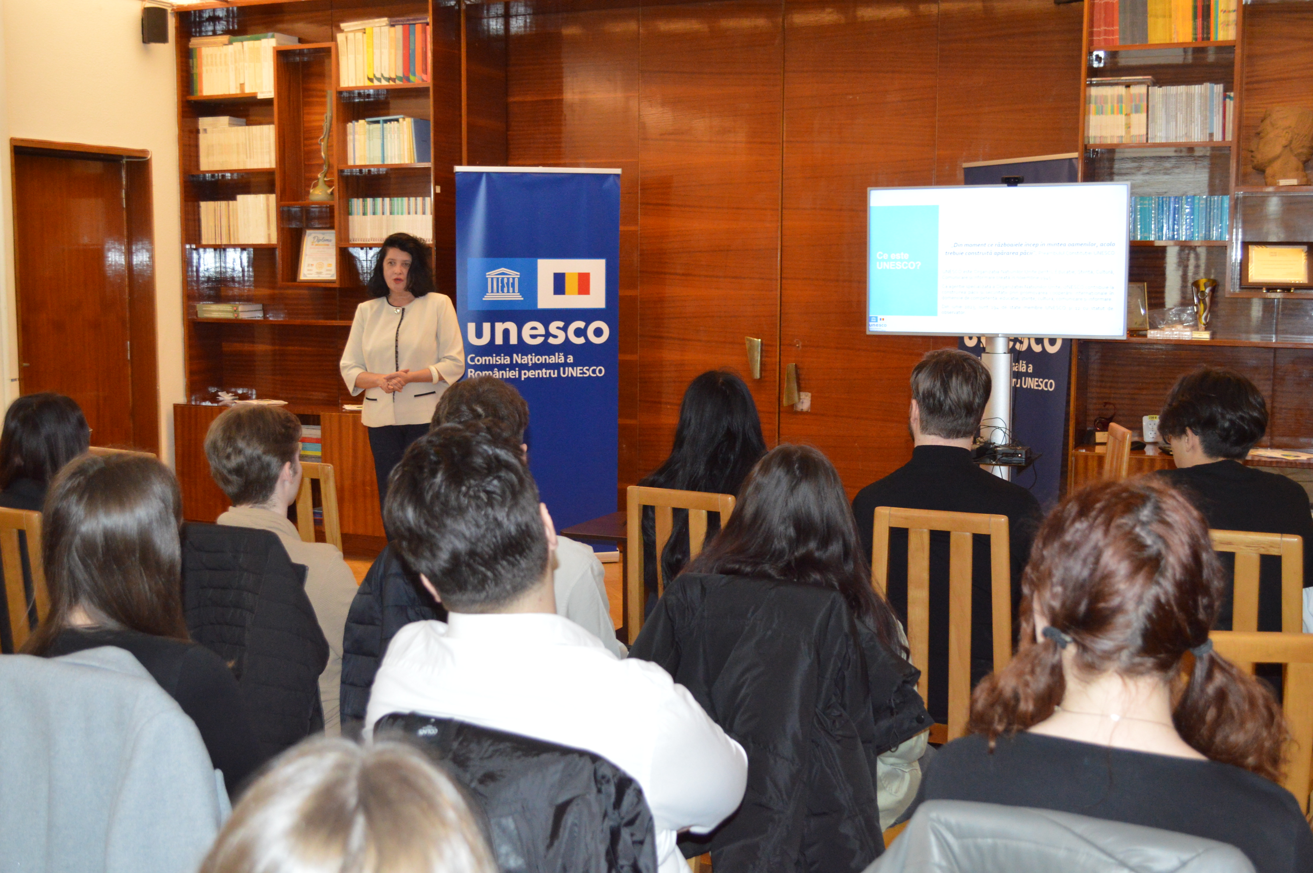 În cadrul întâlnirii au fost prezentate principalele direcții de activitate ale UNESCO la nivel internațional, precum și rolul Comisiei Naționale a României pentru UNESCO în promovarea obiectivelor organizației în plan național și internațional. Studenții au avut ocazia să descopere modul de funcționare al UNESCO, aria sa de intervenție și contribuția României la susținerea valorilor cooperării multilaterale în domenii esențiale precum educația, știința și cultura. Totodată, au fost evocate exemple concrete de inițiative și programe prin care patrimoniul, educația și cercetarea contribuie la consolidarea unei societăți deschise, informate și responsabile.