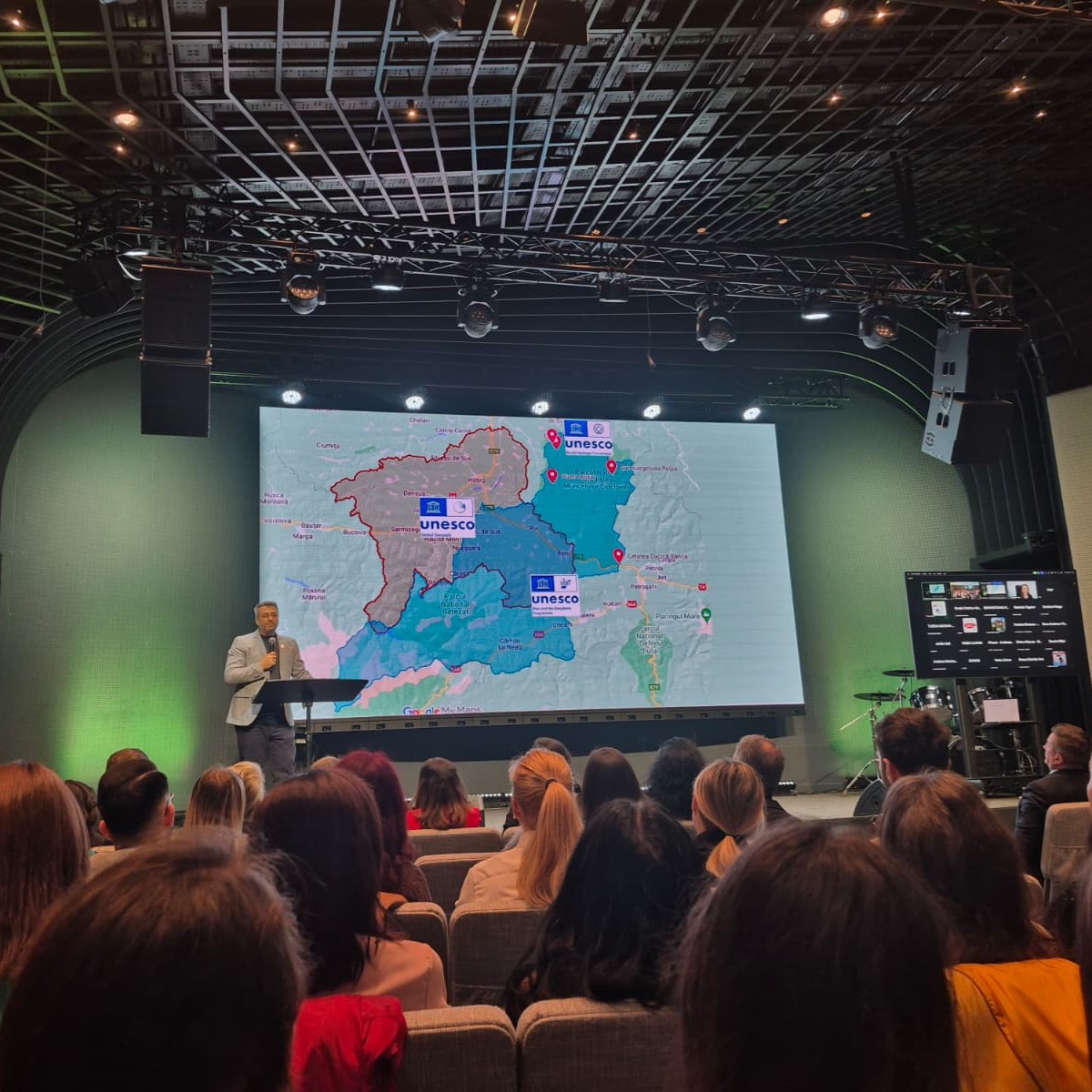 De asemenea, participanții au beneficiat de intervenția live a domnului Nicolae Ajtai, decanul Facultății de Ingineria Mediului, și a doamnei Nicoleta Brișan, Facultatea de Știința și Ingineria Mediului, din cadrul Universității „Babeș-Bolyai”, Chairholder al Catedrei UNESCO pentru Dezvoltare Durabilă.