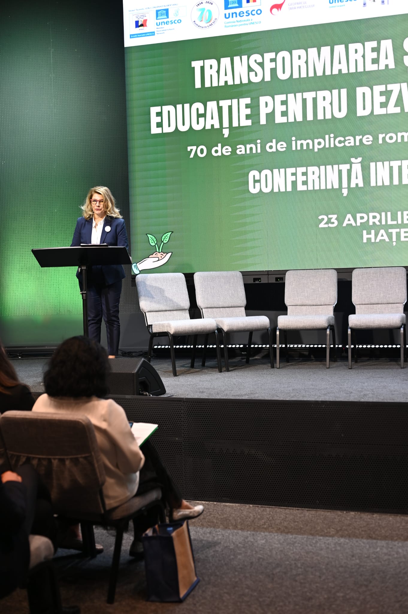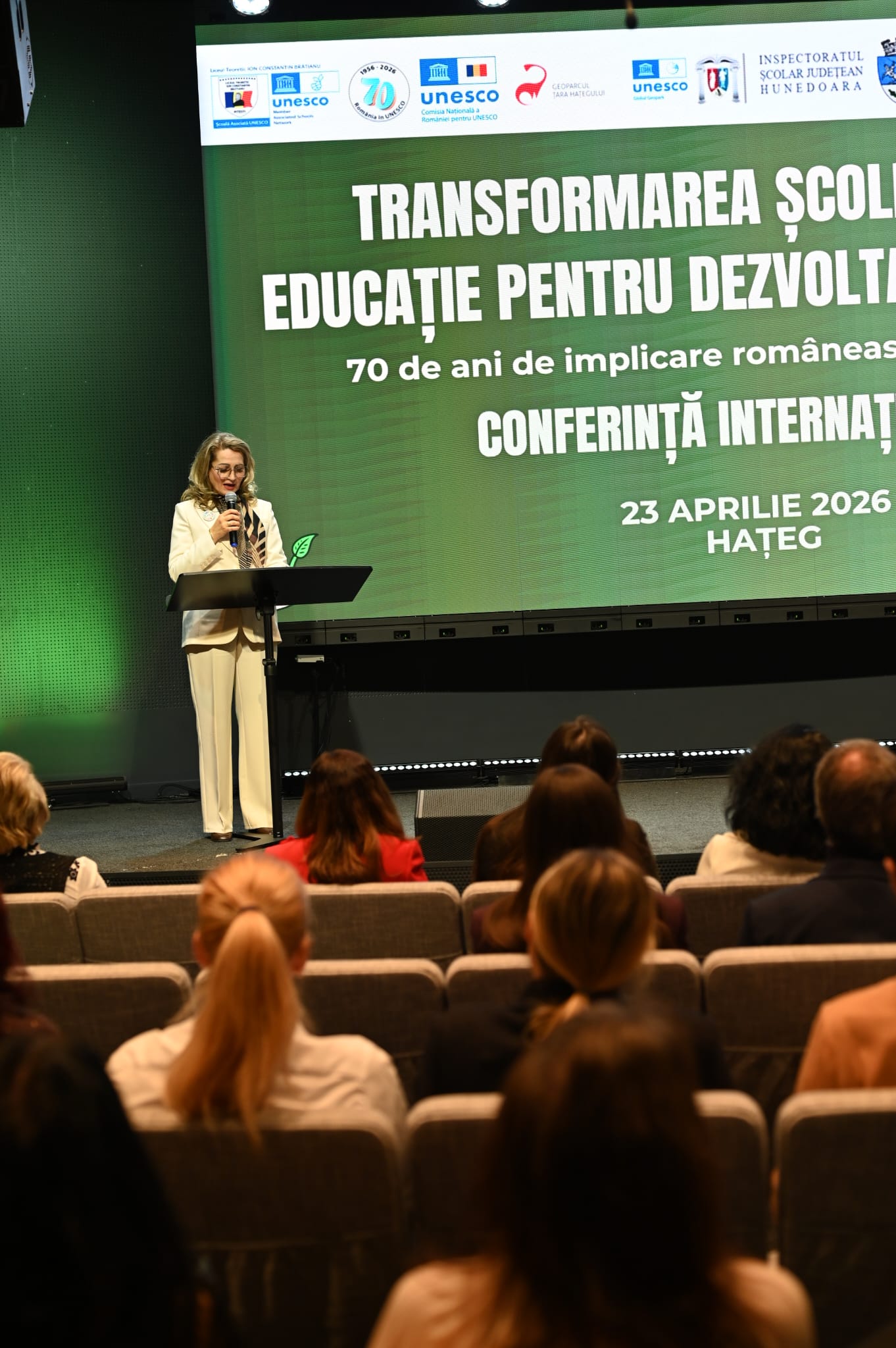Articol publicat pe 27-04-2026Liceul Teoretic „Ion Constantin Brătianu” a organizat, alături de Geoparcul Internațional UNESCO Țara Hațegului, Conferința Internațională „Transformarea școlilor prin Educație pentru Dezvoltare Durabilă – 70 de ani de implicare românească în UNESCO”, eveniment desfășurat sub patronajul Comisiei Naționale a României pentru UNESCO.